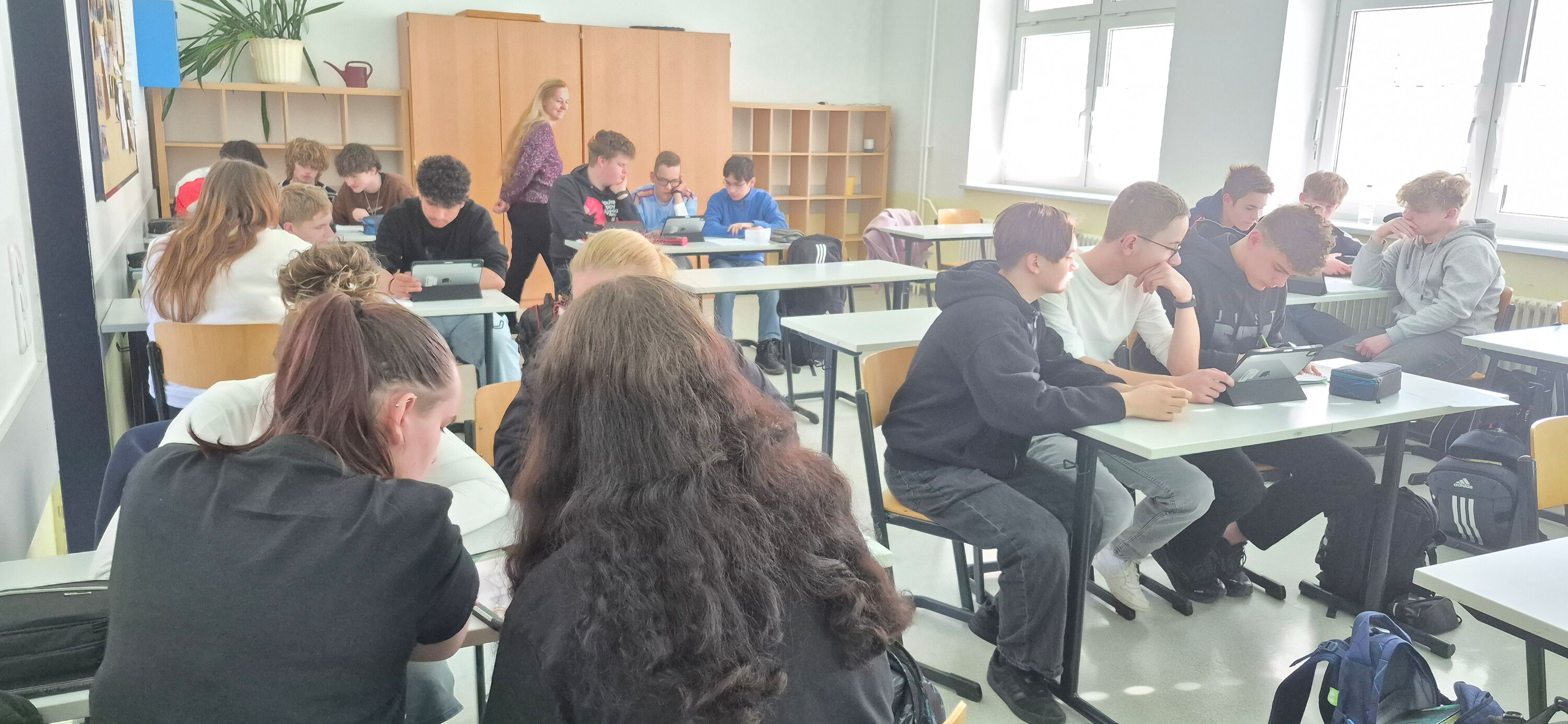 Anlässlich des diesjährigen Girls-Day konnten die Schülerinnen und Schüler der 9a, in Form eines Escape Game, in die Rolle einer Unternehmerin schlüpfen. Das digitale Spiel wurde durch Yvonne Dölz von der Industrie- und Handelskammer (IHK) vorgestellt. Mit dem Spiel erweiterten die Schülerinnen und Schüler ihr Grundlagenwissen zum Thema Unternehmen noch spezifischer um die Sichtweisen "Gründung" und "Selbstständigkeit". Die "Initiative FRAUEN unternehmen" ist dabei als Erfinder des Escape Games zu erwähnen. Während des Spiel stand Annett Barth, Geschäftsführerin von DELTA BARTH, als Unternehmerin mit ihrem Wissen zur Verfügung. Im Anschluss an das Spiel konnten die Schülerinnen und Schüler von Fr. Barth direkt erfahren, was es bedeutet ein Unternehmen zu leiten.